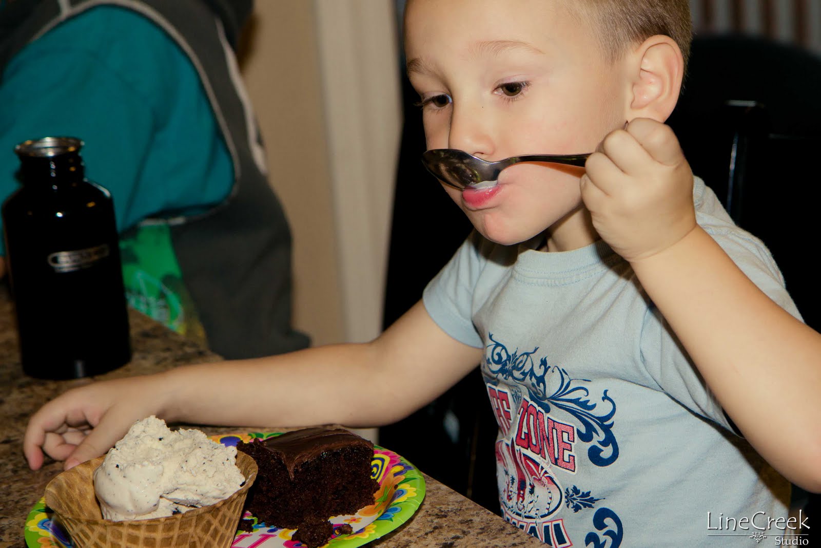 We did a treasure hunt (I spent 20 minutes earlier that day making sure all the clues rhymed), and we also did some crafts. Hayden's clay monkey was one of my favorites. Then we opened presents, had cake and ice cream, and went out to play.
